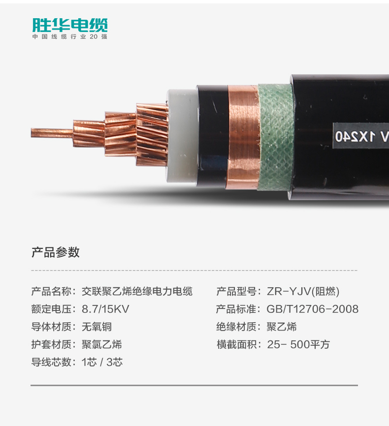 德赢VWIN电缆ZR-YJV-8.715KV中压阻燃交联铜芯电力电缆