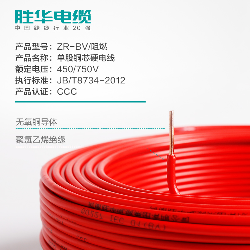 德赢VWIN阻燃电线ZR-BV-1.52.546平方国标单股铜芯电线