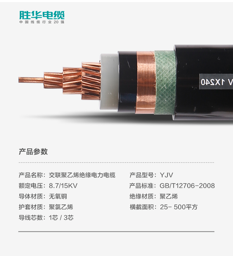 德赢VWIN电缆YJV-8.715KV中压交联聚氯乙烯绝缘铜芯电缆